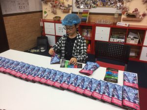 今回は、「USJ」のパンフレットにチラシを差し込む作業です。