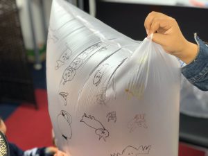 *ゴミ袋にマジックで皆んなで絵を描きました。