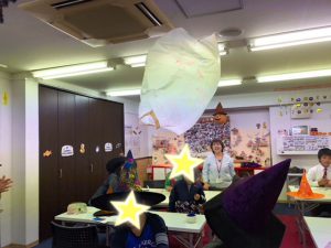 この日はハロウィン!みんな帽子を被ってのカリキュラムです。