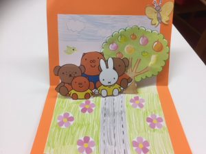 先日のラボラトリーワークで飛び出すカードを作りました。