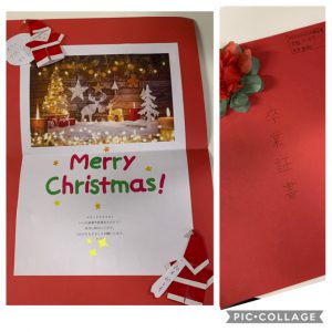 作田先生、綺麗なお花とサンタさんの折り紙ありがとう