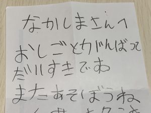 中島さん、おしごとがんばって。だいすきです。またあそぼうね」
