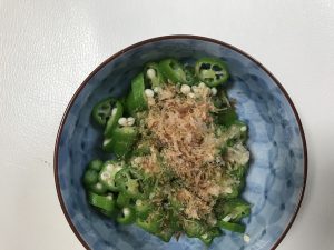 今日のお弁当は、取れたて新鮮なオクラのお浸しをしました!