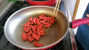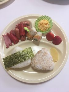 4月からのクッキングも新しくリニューアルされ「子ども料理教室」となりました。4月・5月・6月でお弁当作りを完成させる計画を立てています。4月の初級メニューは、おにぎり・カニさん、タコさんウィンナー・スクランブルエッグ・きゅうり入りちくわ・チーズ入りちくわ・いちごでした。ウィンナーを切っている時には、「ここをなんで切るんだろう」なんて思ってたけど、焼くと切れ目が広がってカニやタコに変身!こんなたくさんのカニさんウィンナー見たことないと・・・私もこんなにたくさん見たことありませんでした。なかなかの迫力ですね。