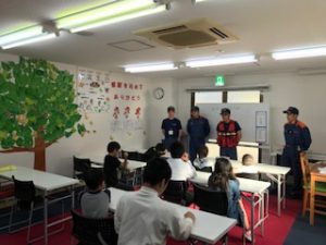 本日、宝塚センターで宝塚米谷消防署の消防士さんに様々なアドバイスを受けながら防災訓練を実施しました。以下の事柄について説明を受け、火災の覚知、現場確認、通報・情報伝達、消火器の配置場所や消火器の使用方法を確認出来ました。
