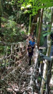 険しい山道にあるアスレチックコースでしたが、果敢に挑みお互いに助け合いながら、少し遅れる人がいると「頑張って」と声を掛け合い、色々な所で思いやりに溢れた行動が出来ていました。
