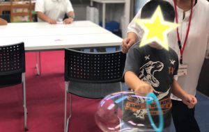 さて今月のサイエンスでは、子供達の大好きな「シャボン玉」を作りました。